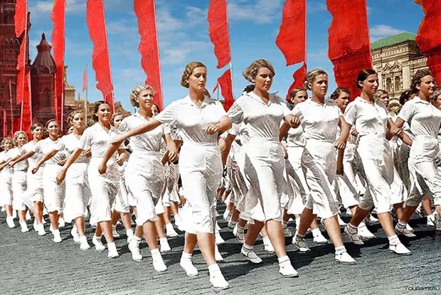 Ну а с сексуальной революцией и свободной любовью, как, впрочем, и с большинством других свобод, к середине 1930-х в стране было покончено (помните знаменитое: «В СССР секса нет!»). Неуемную же сексуальную энергию перенаправили в другое русло: парады авиаторов, марши женщин-физкультурников и прочее. Тогда же появился знаменитый «Марш женских бригад» из фильма «Богатая невеста», первая строчка припева из которого: «А ну-ка, девушки, а ну, красавицы!» позже дала название очень популярной телепрограмме, просуществовавшей с января 1970-го по апрель 1987 года. Теперь, говорят, ее собираются восстановить.