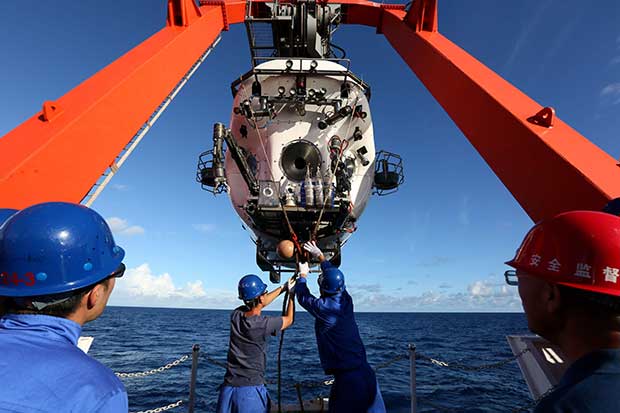 Пилотируемый глубоководный батискаф «Фэньдоучжэ» погрузился более чем на 10 000 метров под воду. Фото Синьхуа
