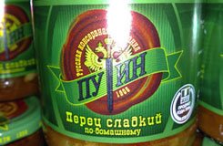Но производителей товара народного потребление это не остановило. Недавно на полках российских продуктовых магазинов появились овощные консервы с броским названием «Путин сладкий перец» на фоне двуглавого орла. Правда, при более детальном рассмотрении можно заметить, что буквой «т» служит изображение рыцарского меча, напоминающего подобный элемент из логотипа КГБ.