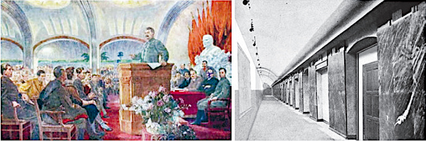 И о картине «Выступление И.В. Сталина на торжественном заседании, посвященном 24-й годовщине Великой Октябрьской социалистической революции». Художник тщательно выписал всех присутствовавших на заседании, проходившем вечером 6 ноября на станции «Маяковская», особенно тех, кто в президиуме. Старался не напрасно: в 1948 году за это творение мастер получил Сталинскую премию в 100 тысяч рублей. А через пять лет шедевр, увы, попортили: вслед за развенчанием культа Сталина досталось и Берии. На вождя рука цензоров не поднялась, а вот лицо «английского шпиона» аккуратно зачеркнули...
