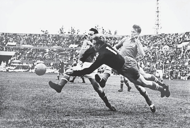 На чемпионате мира по футболу 1958 года в Швеции дебютировала сборная СССР. В атаке Никита Симонян, недавно ушедший из жизни… Фото Н.М. Привалова, газета «Труд»