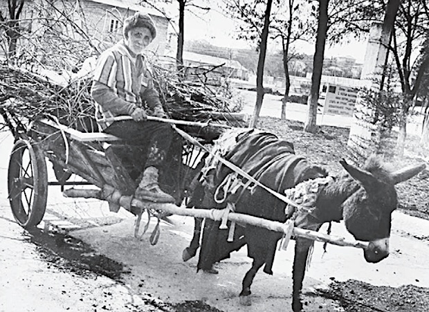 Эту картину репортер «Труда» подглядел в горном ауле. Старик на арбе с осликом везет домой хворост. На тот момент мы были соотечественниками. Фото Н.М. Привалова, газета «Труд»