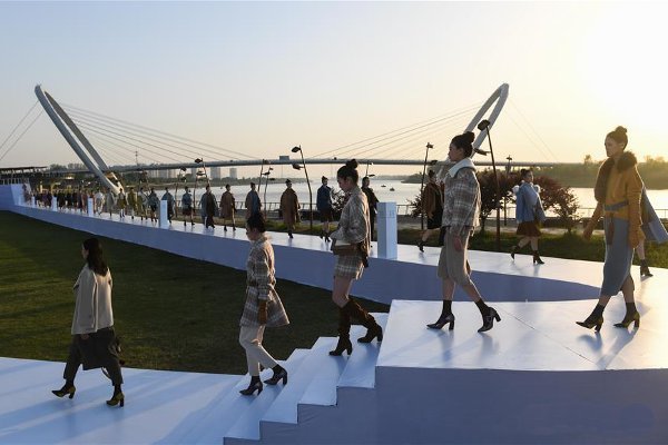 Презентация коллекции сезона зима-2018 была показана в Нанкине, Восточный Китай на фоне современного урбанистического пейзажа недалеко от пешеходного моста «Наньцзинъянь» («Глаза Нанкина»).