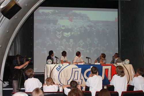 Леонид Слуцкий (в центре президиума) вспоминает свои годы работы в детском футболе