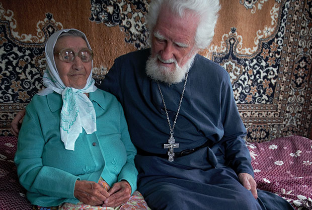Отец Георгий со 102-летней прихожанкой. Фото Романа Мордашева