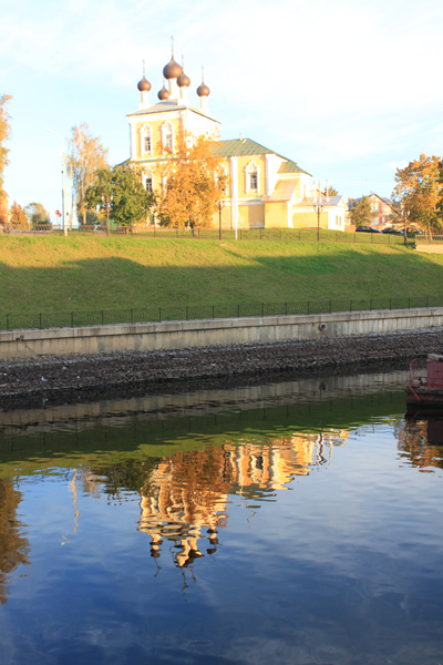 Надо сказать, его основная должность — электрик и электронщик судна, а свои лекции по истории тех мест, мимо которых ходит «Александр Радищев», скорее хобби, чем служебная обязанность. И надо отметить, Александр Юрьевич прекрасно знает и умеет интересно преподнести рассказы не только о местности маршрута Москва — Углич, но и о всех пяти морях, а также реках, каналах и водохранилищах, связанных в единую водную систему европейской части России. И далее мы с удовольствием будем пользоваться в том числе и той информацией, которую мы получили от Иванова.