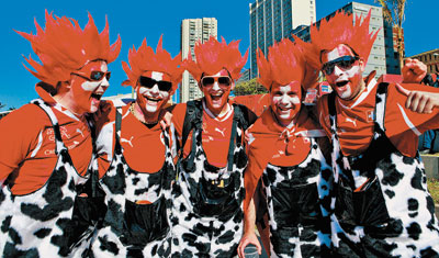 Болельщики сборной Зеленого континента на каждом поединке в ЮАР пытаются доказать, что в их стране живут не только кенгуру, но и очень яркие и улыбчивые ребята, которые всегда готовы поддерживать своих футболистов.