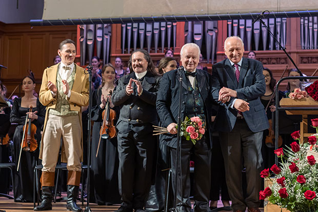 Дирижер Юрий Симонов (второй справа) и автор идеи Валерий Ворона (справа) среди исполнителей оперы