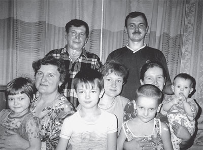 Чайдак Иван Васильевич. У него три сына, шесть внуков. На фото он с женой, то есть со мной, средним сыном Васей, двумя невестками и внуками. Сейчас на двух внучек больше. Всего нас 14 человек.
