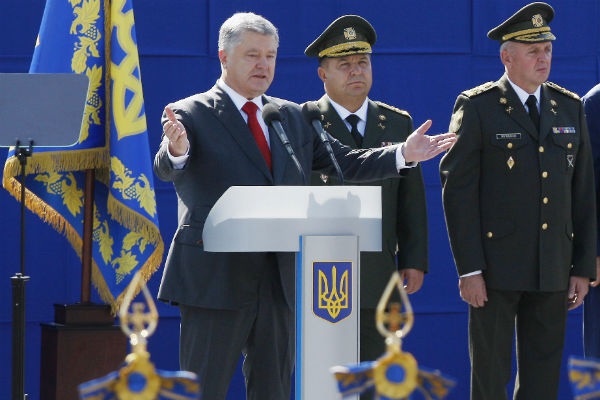 Ïðåçèäåíò Óêðàèíû Ïåòð Ïîðîøåíêî â ïÿòíèöó, 24 àâãóñòà ïðèíÿë â Êèåâå ïàðàä â ÷åñòü Äíÿ íåçàâèñèìîñòè ñòðàíû. Îòêðûë ìåðîïðèÿòèå óêðàèíñêèé ëèäåð öèòàòîé èç ãèìíà ÎÓÍ – çàïðåùåííîé â Ðîññèè Îðãàíèçàöèè óêðàèíñêèõ íàöèîíàëèñòîâ.