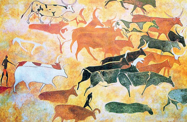 Люди эпохи неолита (5-3-е тысячелетия до н. э.), оставившие этот наскальный рисунок в одной из пещер плато Тассилин-Аджер в Сахаре (Алжир), конечно, и не догадывались, что запечатлели переломный момент в истории человека как вида. По крайней мере с точки зрения палео-эпидемиологов — специалистов, изучающих причины возникновения болезней в древнейшие времена. Переломный, потому что именно тогда, с появлением скотоводства и земледелия, то есть с началом аграрной революции (примерно с 9-го тысячелетия до н. э.), и зародились условия для будущих эпидемий и пандемий.