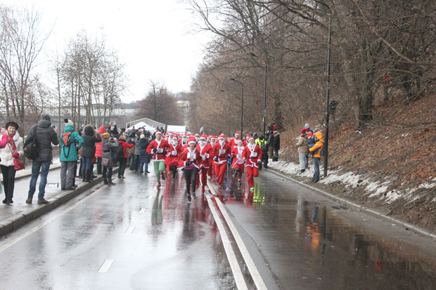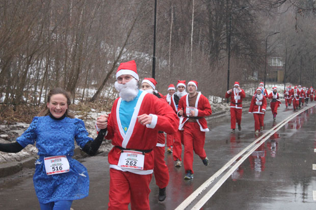 С выстрелом стартового пистолета 500 Дедов Морозов понеслись в сторону Воробьевской набережной. Поворот трассы был немного не доходя до устья Сетуни. Круг - 5 километров в одну сторону и назад. Часть спортсменов бежало 5 км, а самые стойки – «десятку». Тот факт, что Деды Морозы в канун Нового года скакали через лужи, а самые уставшие и вовсе шлепали по воде ногами, обдавая соперников брызгами, никому не ухудшало настроения.