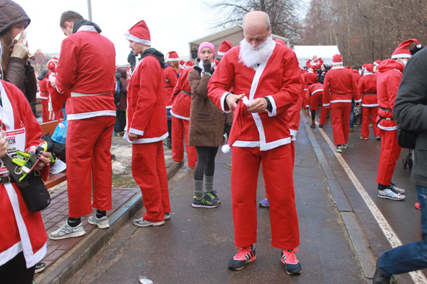 На массовом забеге Дедов Морозов, несмотря на отсутствие среди участников спортсменов международного и просто высокого уровня, все мероприятие прошло гладко. Учитывая холодную погоду, организаторы поставили палатки с теплым наддувом. Номерами и даже костюмами Дедов Морозов снабдили участников быстро и четко. Многочисленные теле и фото-журналисты были расставлены по местам таким образом, чтобы в их объективы попали ключевые моменты забегов, а сами корреспонденты при этом не мешали спортсменам в суматохе массового старта.