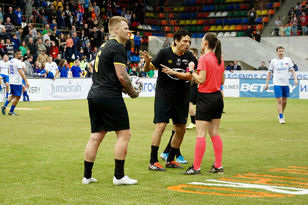 Когда время матча закончилось, Александра Пономарева не дала свисток, финальной сирены тоже не прозвучало. Пока команда мировых легенд отвлеклась на объятия и поздравления, сборная России разыграла аут, и Егор Титов быстро забил гол.