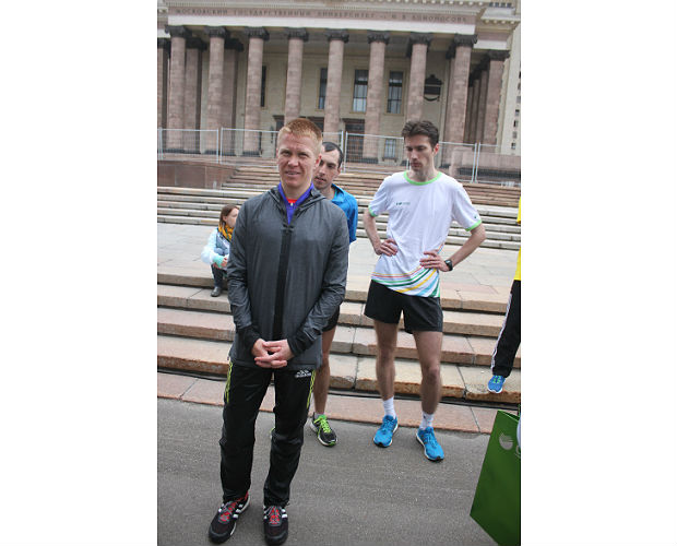 Но теперь — о спортивной части мероприятия. Сразу после старта, как и следовало ожидать, вперед вышел сильнейший на данный момент российский марафонец Алексей Реунков. Он является бронзовым призером чемпионата Европы 2014 года. Отметим: к сожалению, Алексей является единственным представителем нашей страны, кому удалось отобраться по своим результатам на чемпионат мира нынешнего года.