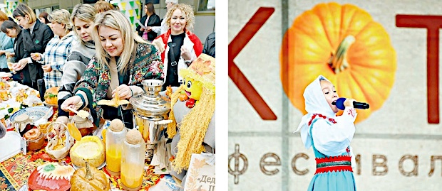 Но вернемся на праздник. Фестиваль тыквы с сочным названием «Мякоть» начался в 8 утра с подвоза экспонатов, а закончился к 16 часам. Гостей, которых собралось около четырех сотен, угощали кашей из тыквы, оладьями, жарким в горшочках из тыквы, медом, блинами — все бесплатно, все с улыбкой. А на десерт подавали концерт, конкурсы и истории. Вот только одна из них.