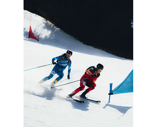 Расскажем и мы. Итак, трасса ски-альпиниста состоит из трех частей. Сначала атлет забегает в длинный подъем, используя камус — специальную подкладку на нижнюю поверхность лыжи, чтобы та не проскальзывала назад, или вовсе снимает лыжи и при необходимости надевает «кошки». Затем на максимальной скорости спускается вниз по склону, причем не по трассе, а по рыхлому снегу. А в заключение его ждет лыжная гонка.