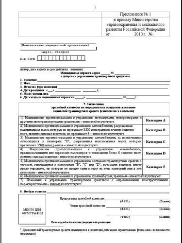 «Приказом министра здравоохранения и социального развития РФ с 27 октября в России вводится единый образец медицинской справки о допуске к управлению транспортными средствами» — рассказали Interfax в ведомстве. Кроме нее была утверждена форма справки и «Журнала регистрации выданных медицинских справок о допуске к управлению транспортными средствами».