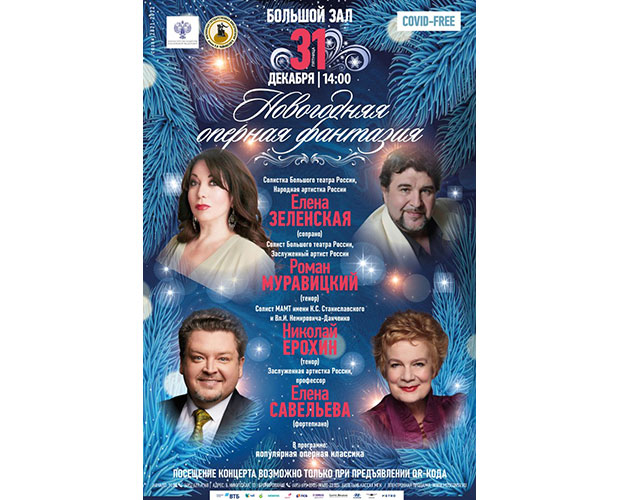 В том, что они тоже исполнители мирового класса, можно будет убедиться в последний день 2021 года, придя на дневной концерт в Большом зале консерватории, который озаглавлен «Новогодняя оперная фантазия». Арии из опер Глинки, Чайковского, Римского-Корсакова, Россини, Гуно, Пуччини, Чилеа прозвучат в исполнении прославленных солистов – Елены Зеленской (сопрано), Романа Муравицкого и Николая Ерохина (тенора). Партию рояля сыграет не менее известный концертмейстер, работавшая со всеми ведущими отечественными вокалистами – профессор консерватории Елена Савельева. А чтобы добавить программе праздничного блеска, в нее включили арии и ансамбли из оперетт Кальмана, Легара, Соросабаля, неаполитанские песни Тости, Кьяры и Куртиса, а вишенкой на торте станет «Застольная» нашего «красного Моцарта» – Исаака Дунаевского.