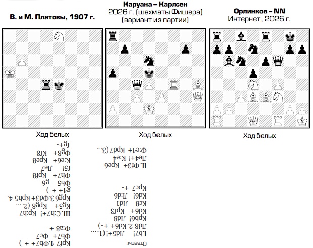 Начнем наш обзор с очередного супертурнира, пусть и по шахматам Фишера (фристайлу), прошедшего в Вайсенхаусе (Германия). Вновь использовалась смешанная система, когда сначала восемь участников играют по кругу с контролем времени 10 минут + 5 секунд на ход, а затем в дело вступает «нокаут». Правда, в этот раз в финальную часть попадала лишь половина игроков, а остальные могли бороться только за места начиная с пятого. Даром что, как и первая четверка, по нокаут-системе с микроматчами из четырех партий с почти классическим контролем 25 минут + 10 секунд на ход. Круговой турнир выдался очень упорным. Лучшим стал Магнус Карлсен (Норвегия), набравший 4,5 из 7, на пол-очка меньше у Фабиано Каруаны (США), Нодирбека Абдусатторова (Узбекистан) и Винсента Каймера (Германия). Эта четверка и прошла в главный полуфинал, где Карлсен обыграл Абдусатторова (3:1), а Каруана — Каймера (2,5:1,5). В довольно драматичном финале Карлсен — Каруана удачливее оказался норвежец. После двух ничьих в третьей партии микроматча Карлсен в самом дебюте зевнул промежуточный шах, и его король попал в настоящее пекло. Справедливости ради, компьютерную оценку «+9» Каруане надо было подтверждать точными решениями. На протяжении нескольких ходов он все делал правильно, но затем «рука дрогнула», выигрыш стал все более усложняться, и в конце концов американец даже проиграл. В заключительной партии Магнус шансов на победу сопернику не оставил. В матче за 3-е место Абдусатторов также с минимальным перевесом превзошел Каймера. А среди «неудачников» кругового турнира и, соответственно, участников полуфинала «В» места с 5-го по 8-е распределились в следующей последовательности: Ханс Ниманн (США), Арджун Эригайси (Индия), Левон Аронян (США), Жавохир Синдаров (Узбекистан).