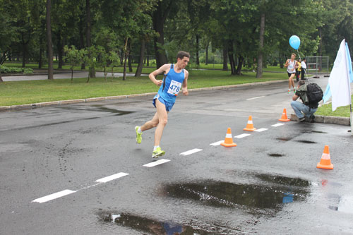 На сей раз упорной борьбы на дистанции не получилось. С самого старта вперед вышел мастер спорта по марафону Андрей Сергеев, воспитанник известного смоленского тренера Николая Кругликова. Было заметно: Андрей контролирует бег, и при необходимости может прибавить в темпе. Но такой необходимости у него по ходу забега не возникало. Сергеев финишировал, будучи на финише совсем свежим. Чувствовалось: ему вполне по силам даже при тех же условиях пробежать на 2–3 минуты быстрее. А условия оказались непростыми: с раннего утра прошел ливень, а потом начало припекать солнце. Дышать при интенсивной нагрузке было очень тяжело.