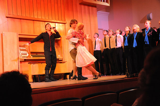 В то же время авторы ни в коей мере не хотят впасть в ложный пафос: их спектакль — это не агитка, а серьезный диалог со зрителем посредством песни и стихов (как хорошо известных, так и новых), сведенных в единый сюжет о прошлом и настоящем во имя «честного завтра».