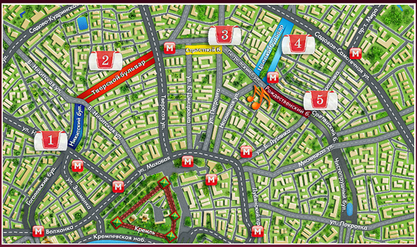 На Тверском бульваре (№ 2 на карте) развернется музыкальная галерея, где можно будет услышать от классической и народной музыки до поп и