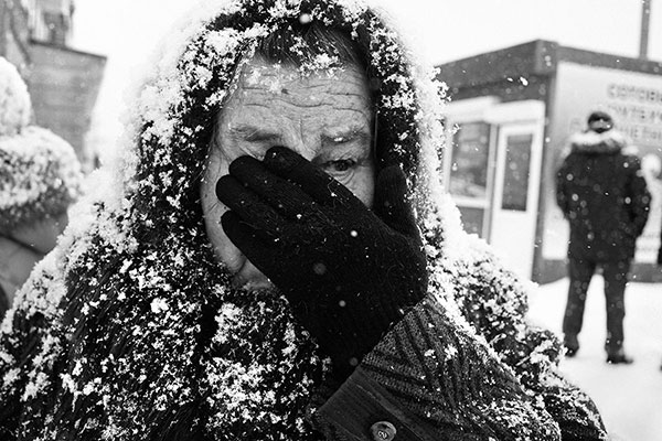 Выставка «Ледяной поход» родилась из сложного и опасного проекта. Группа современных фотографов и художников не просто повторила путь отступления Добровольческой армии от Барнаула до Читы, но проделала это в те же календарные сроки, что и белогвардейцы сто лет назад. Тридцатиградусный мороз, голодные солдаты, промерзшие шинели, превратившиеся в ледяную корку... Пожилая женщина с черно-белого портрета работы фотографа Артема Лежепекова закрывает лицо рукой. Говорить тяжело, хотя отступление белых через ее родное село Уяр она помнит не сама. С детства эту быль, как страшную сказку на ночь, ей рассказывала мать, принимавшая у себя оборванных солдат и столкнувшаяся лицом к лицу с жестокостью и отчаяньем.