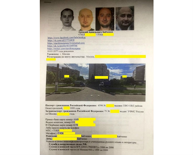На сайте Службы безопасности Украины опубликован документ, в котором указаны московский адрес и российский номер мобильного телефона, в то время как покушение готовилось в Киеве.