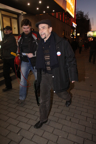 Тем временем, разрешенный митинг начался, и слово взяла организатор, идейный вдохновитель, и, можно сказать, «бабушка российской демократии» Людмила Алексеева. К сожалению, революционного задора в ее словах не было. Было очевидно, что главе Московской Хельсинкской группы тяжело говорить (83 года — возраст солидный), однако она произнесла все те постулаты, которые от нее ожидала толпа. «Это наш Город!», — пыталась кричать в микрофон Алексеева. «Ээ аш ород», — нестройно отзывалась толпа. «Это наша страна» — объявляла Алексеева. «Аш страна» — отзывались собравшиеся. Долго выступать правозащитнице не позволил возраст, и, видимо, усталость. На сцене, довольно быстро ее сменил один из лидеров «Левого фронта» Сергей Удальцов.